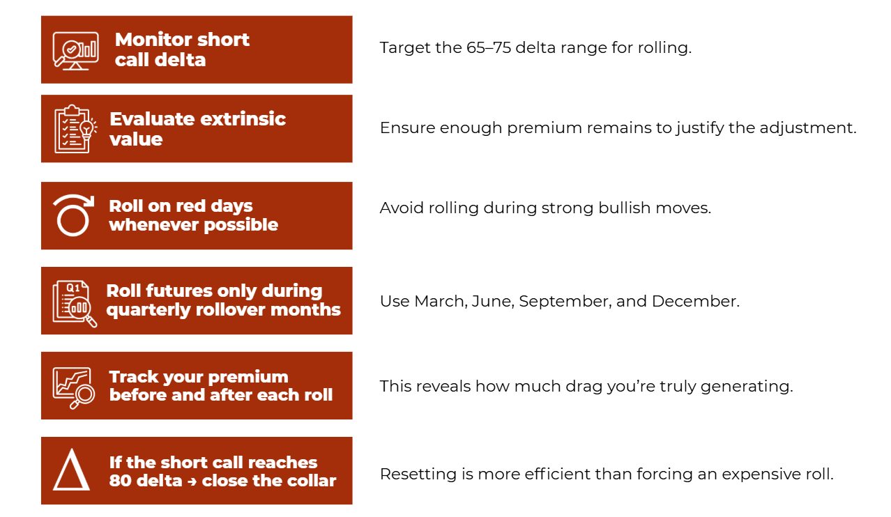Because the market doesn’t move in a predictable weekly pattern, schedule-based rolling often leads to poor fills and premium leakage. This is one of the main reasons drag accumulates.
